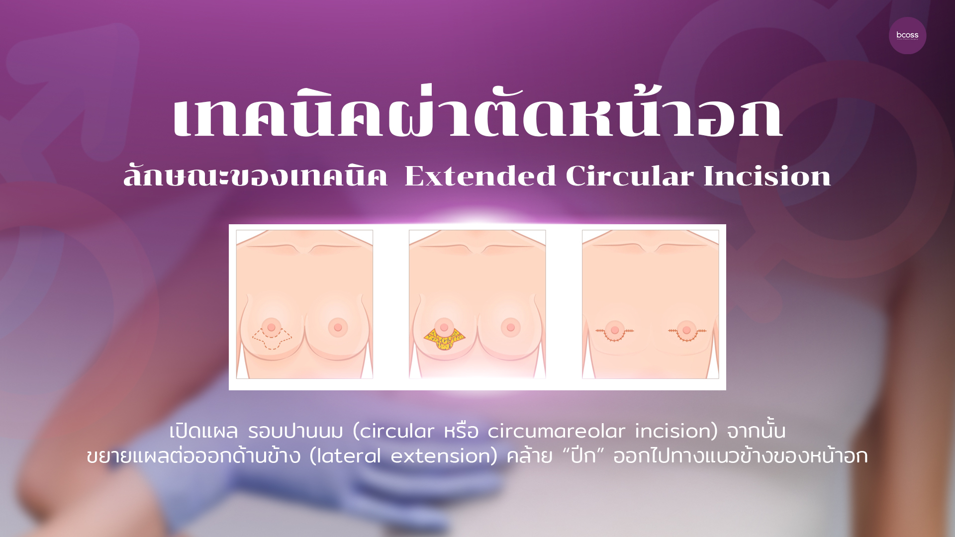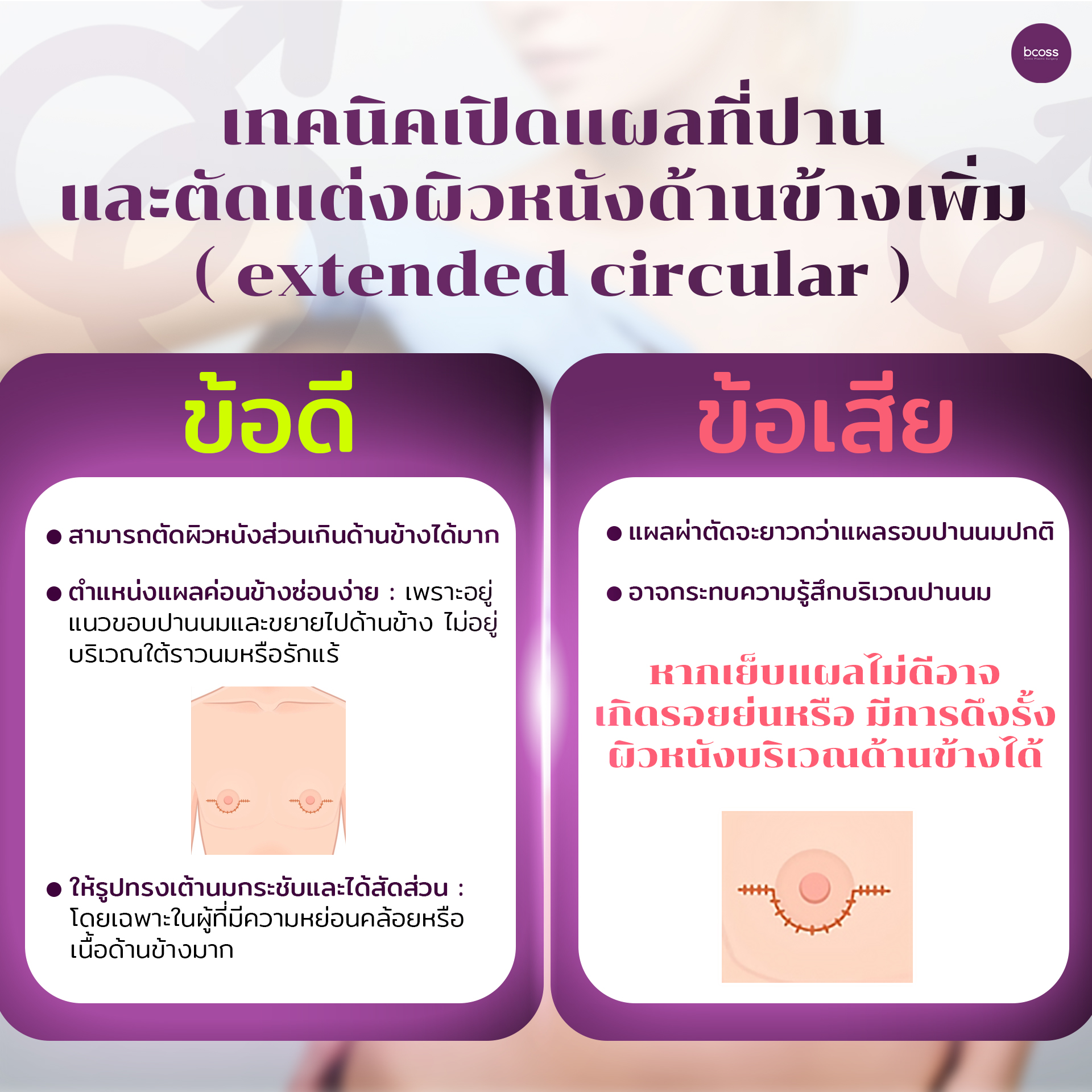 เทคนิคการผ่าตัดเปิดแผลที่ปานและตัดแต่งผิวหนังด้านข้างเพิ่ม ( extended circular)